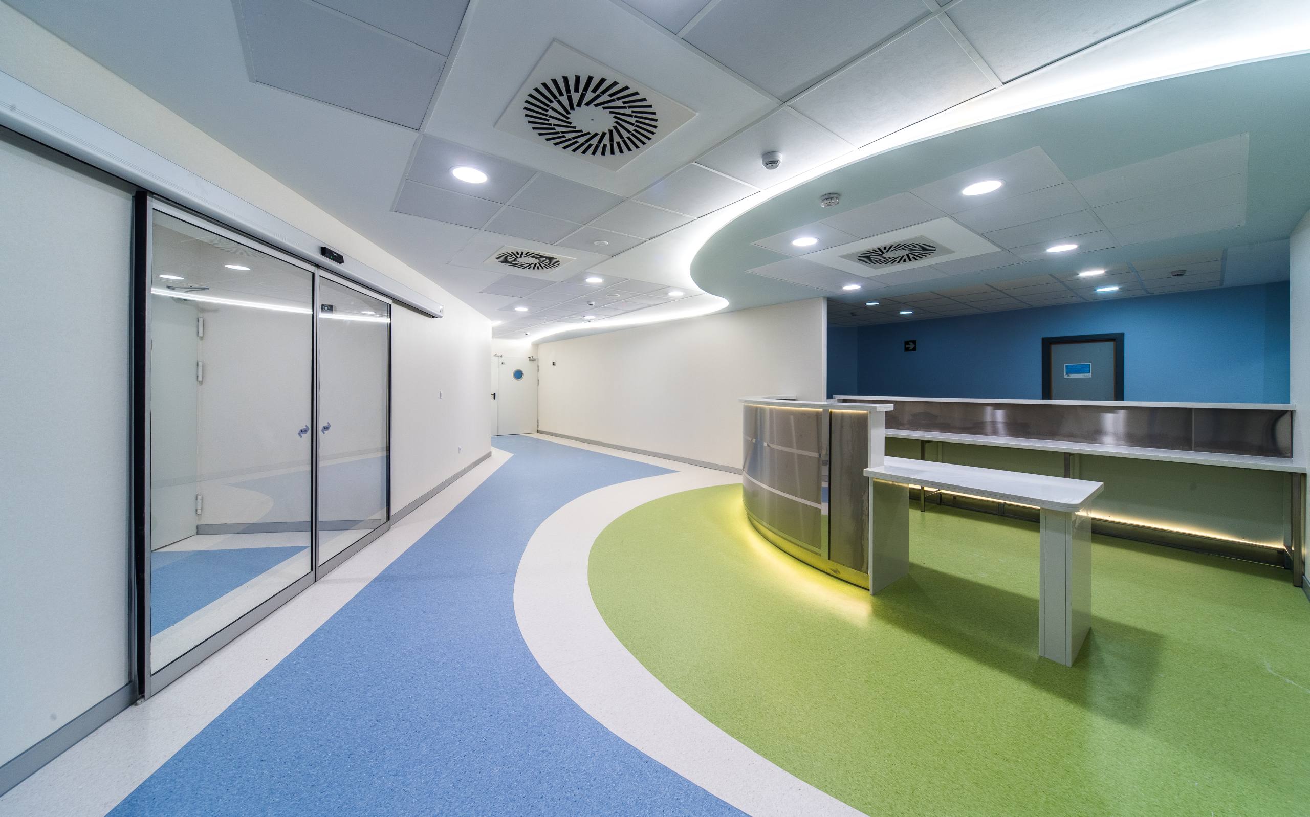 Urgencias del Hospital Infantil del Hospital Universitario Virgen del Rocío. Sevilla. La intervención ha consistido en la reestructuración integral del Servicio de Urgencias del Hospital afectando a la entrada, zonas de admisión y espera, consultas, salas de RCP, zonas de tratamiento, etc.