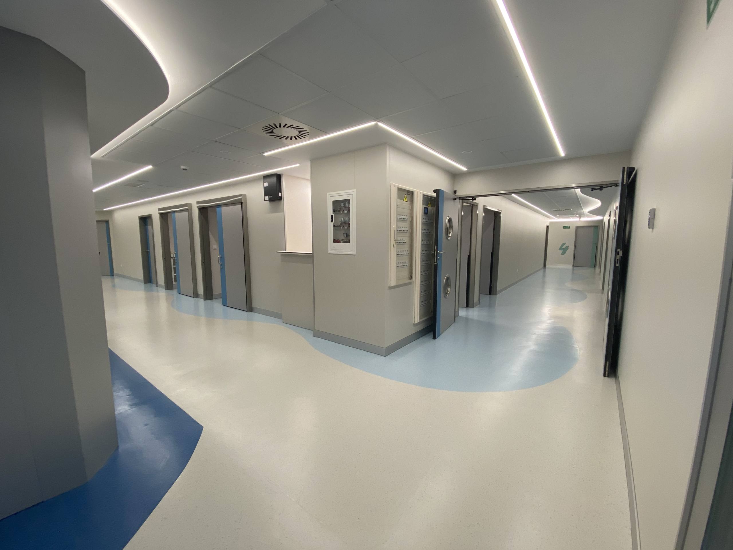 Bloque Quirúrgico en la Planta 1 del edificio de Hospital Infantil en el Hospital Universitario Virgen del Rocío. Sevilla. Reforma integral del bloque quirúrgico que incluye la construcción de 7 Quirófanos en total. 4 Quirófanos para cirugía programada, uno de ellos para cirugía extracorpórea, 1 Quirófano de Urgencias y 2 Quirófanos de Cirugía Mayor Ambulatoria. La intervención afecta también a las áreas de apoyo, vestuarios, almacenes, etc.