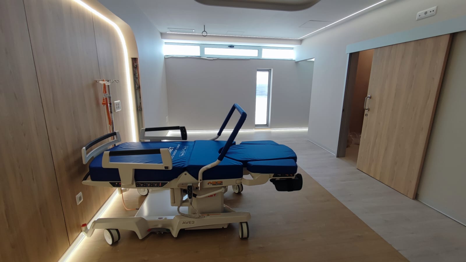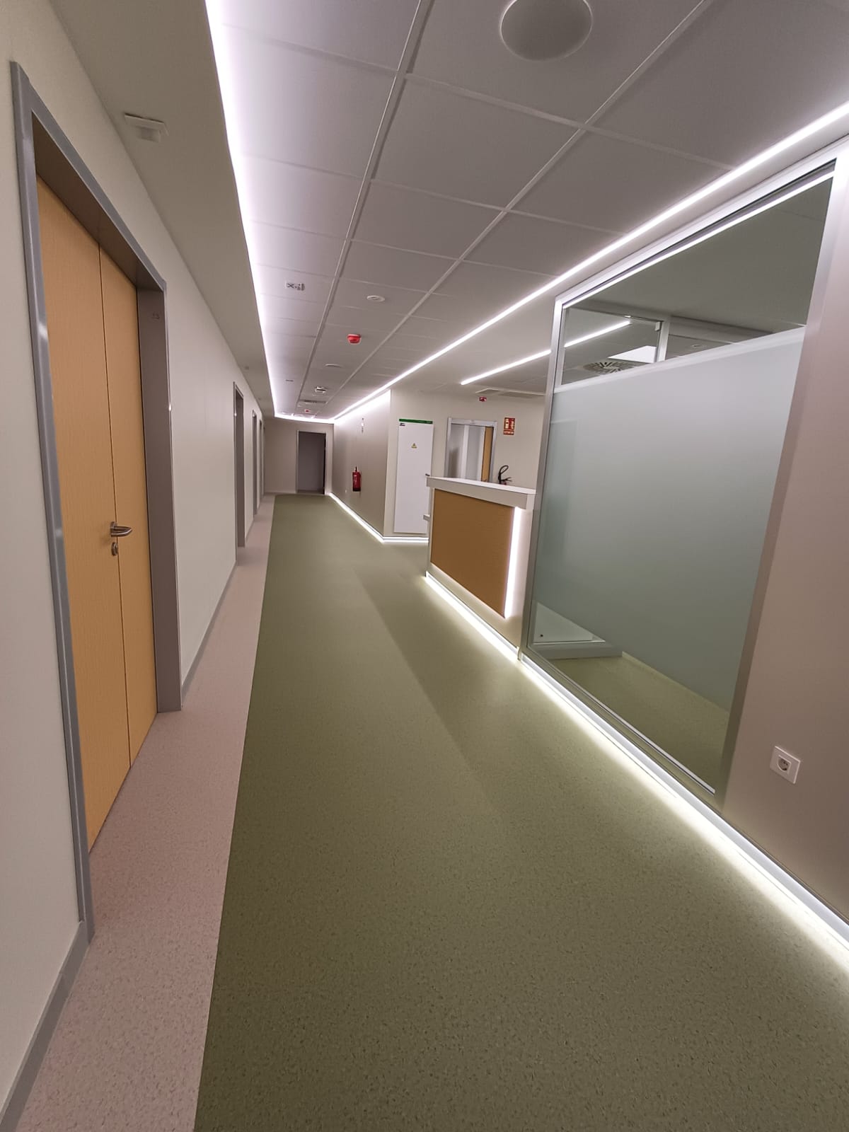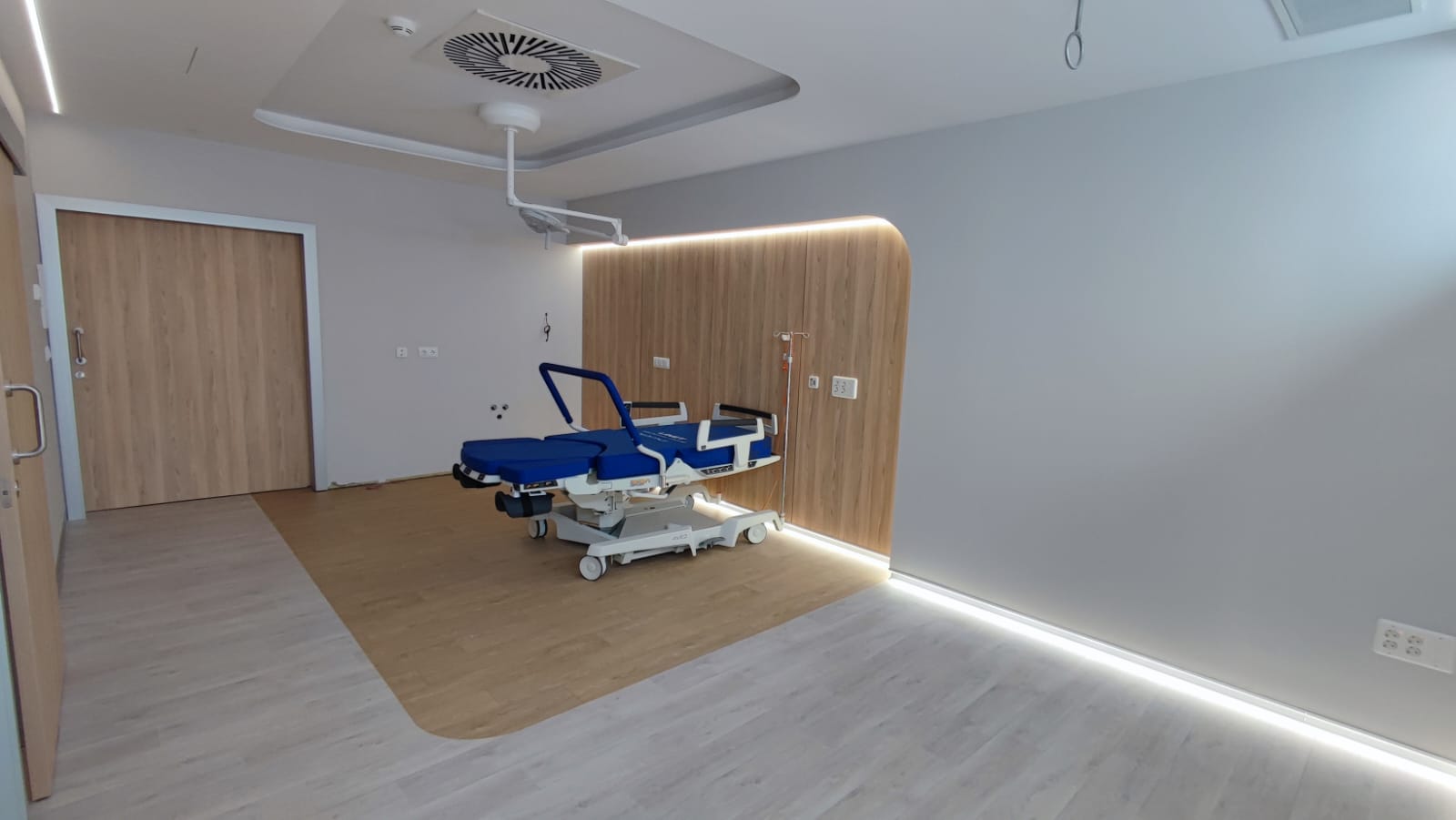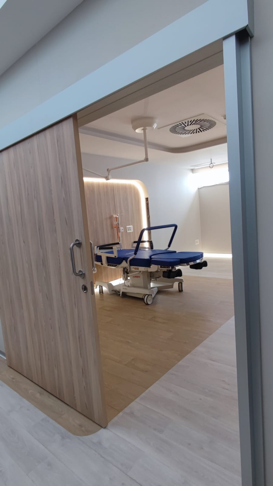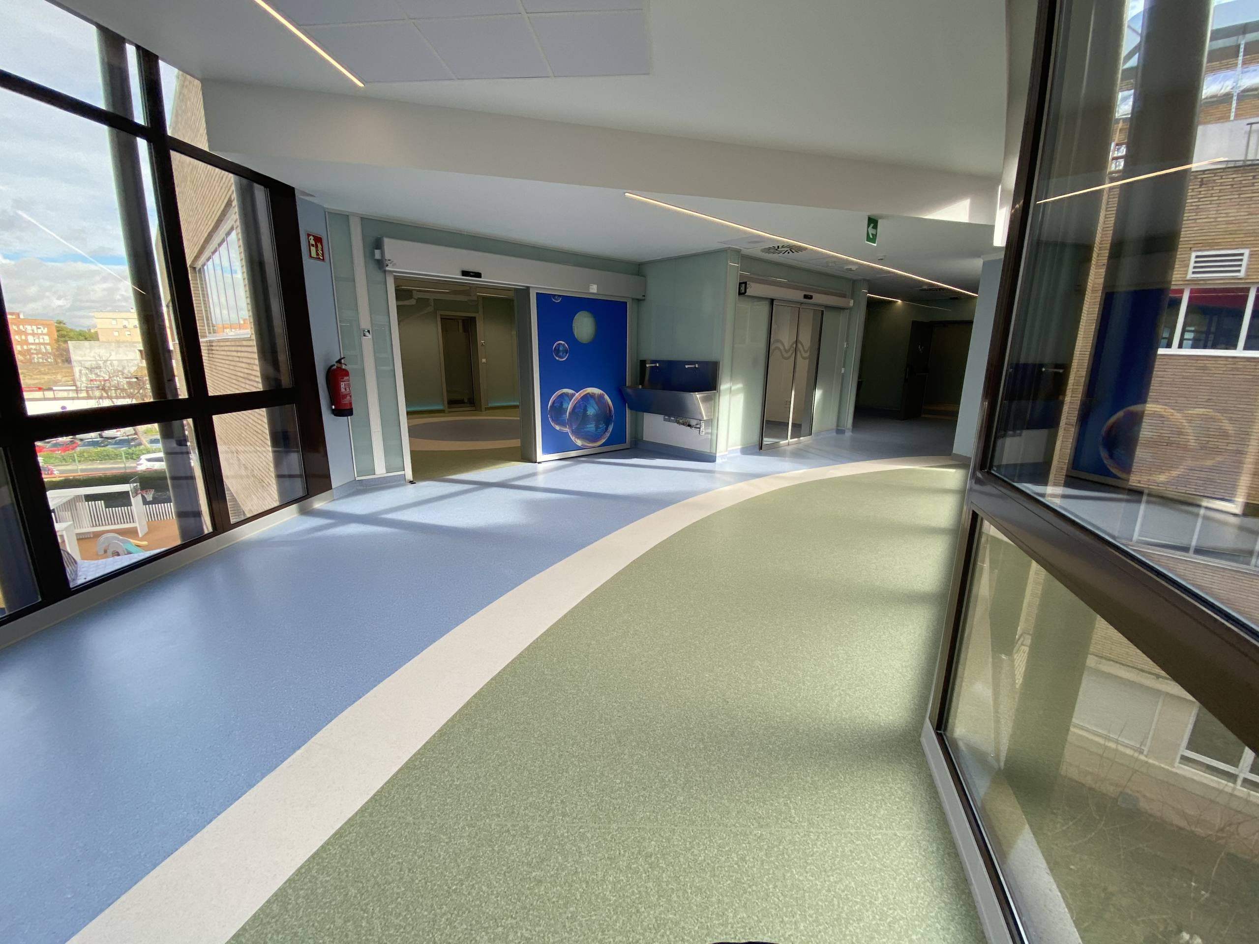 Área de Dilatación y Partos en la planta 2 del Hospital Universitario de Fuenlabrada. Madrid. La intervención consiste en la reestructuración integral del servicio de paritorios dotándolo de 5 nuevas salas de Dilatación-parto y afectando a todas las áreas de apoyo, enfermería, reanimación, exploración, etc.