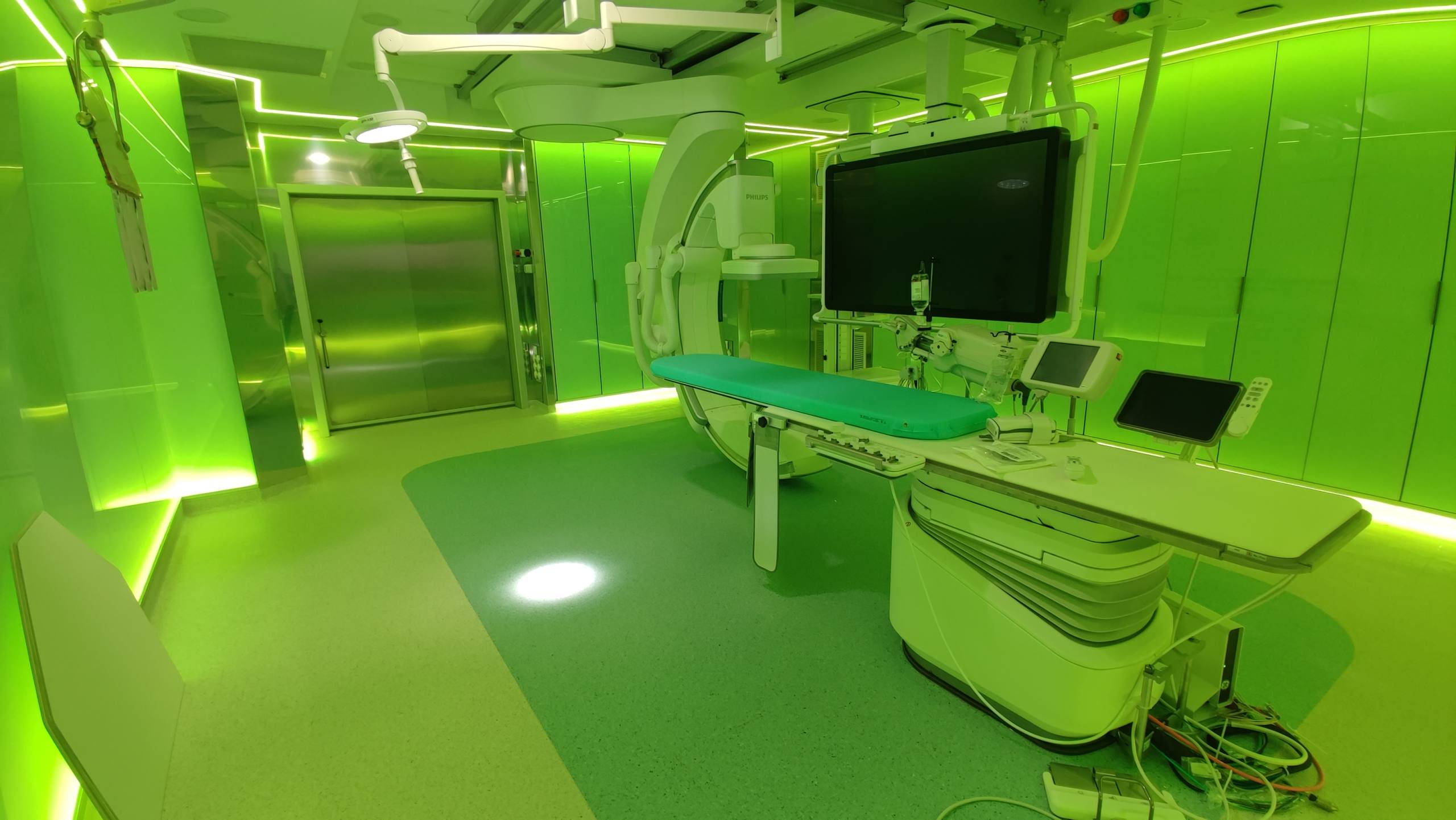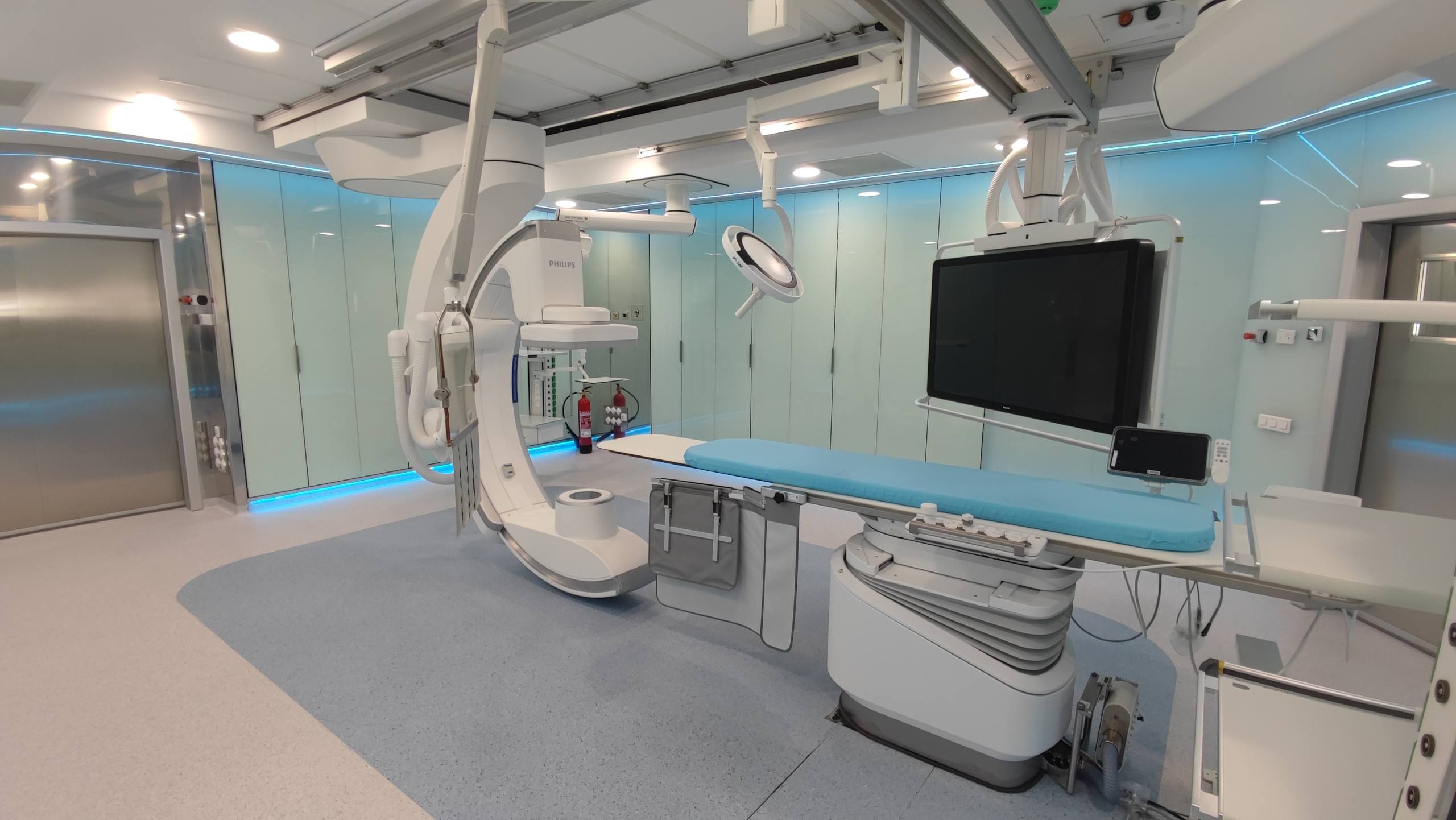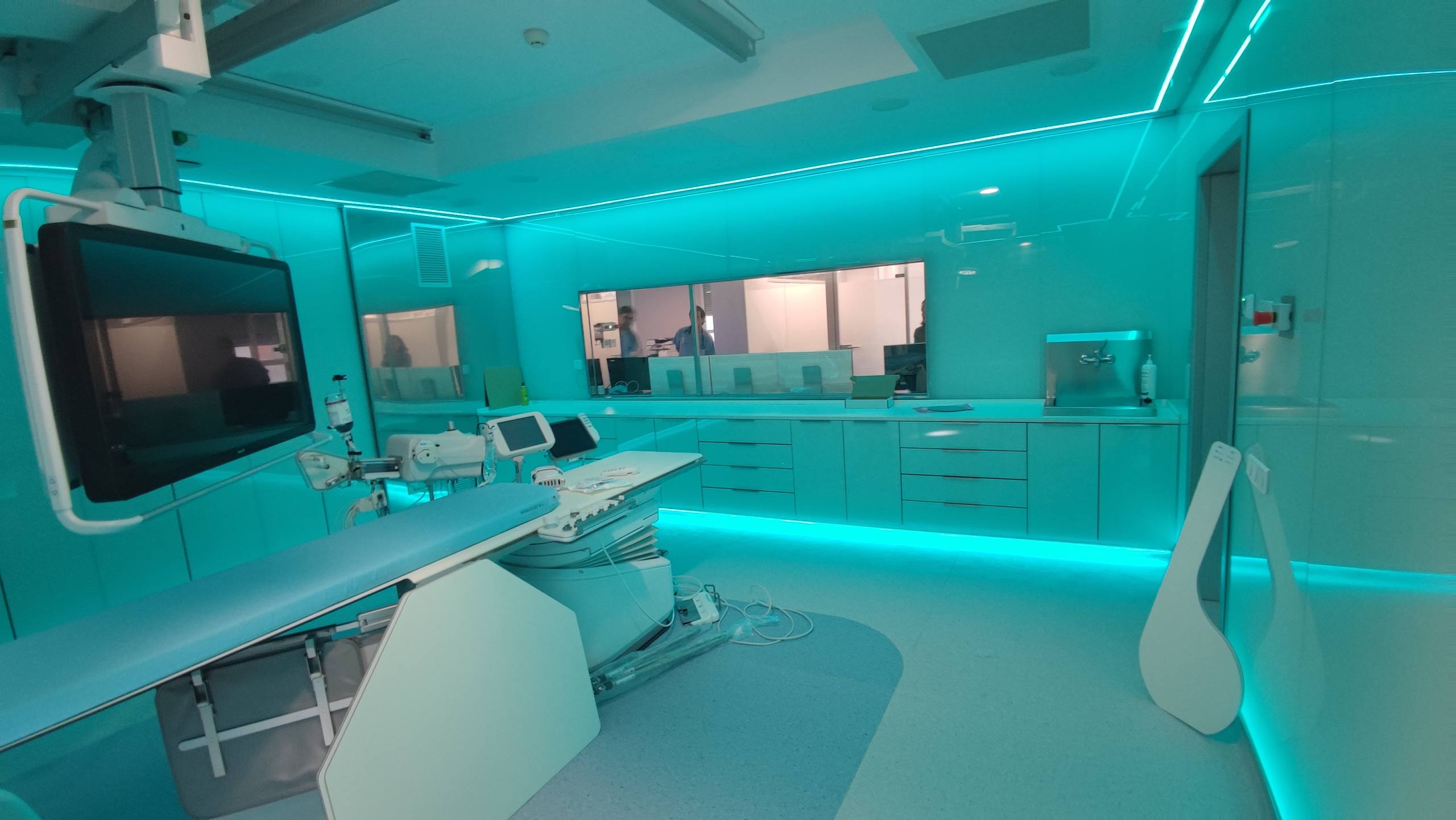 Unidad de Cardiología Intervencionista en la planta 2 del Hospital Clínico San Carlos. La intervención incluye la implantación de 4 equipos de Cardiología Intervencionista, la actuación se completa con la reforma de 2 salas más que mantienen el equipamiento y la a reorganización de todo el servicio, áreas de pacientes y personal, áreas administrativas y zonas de circulación.