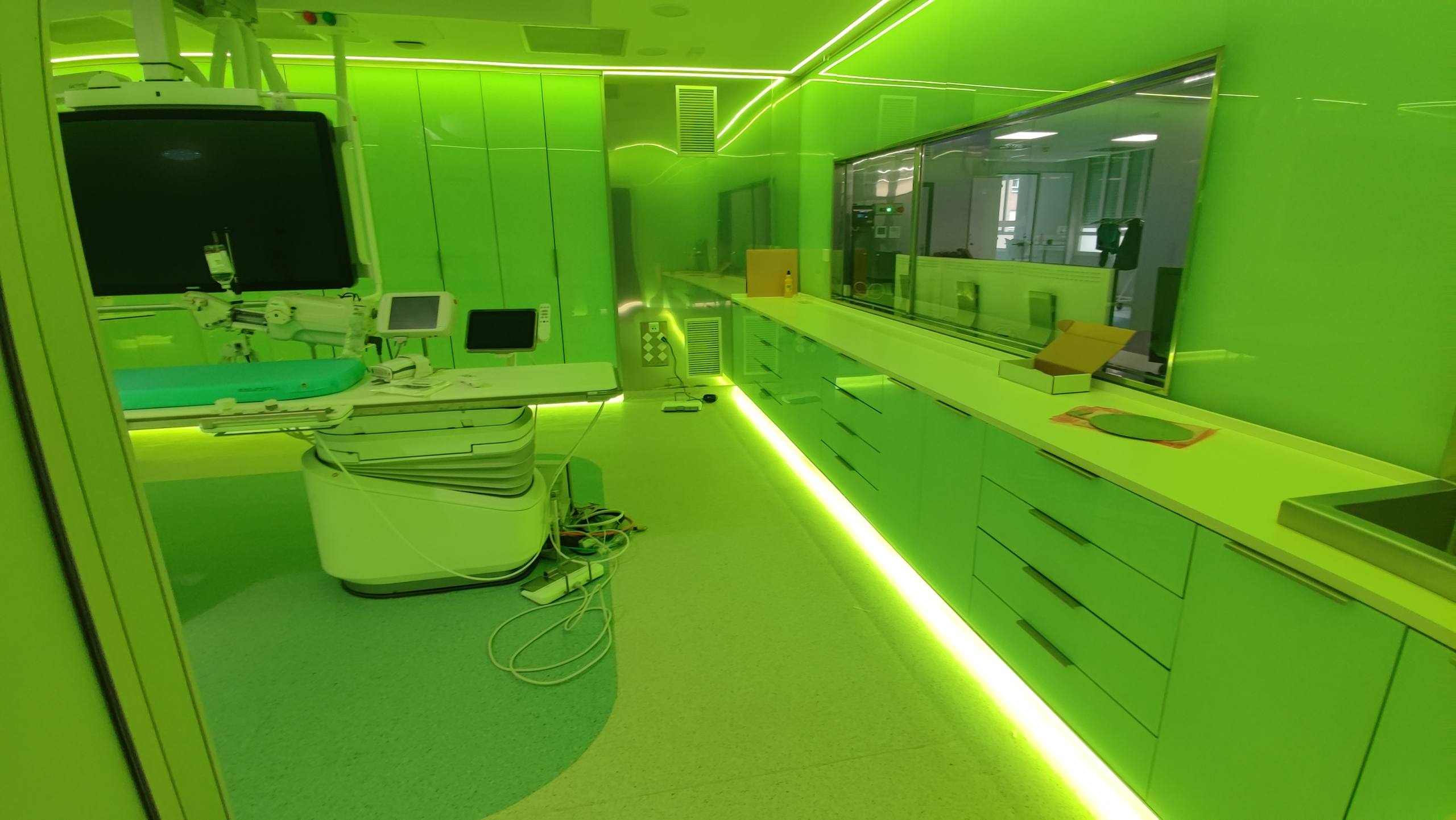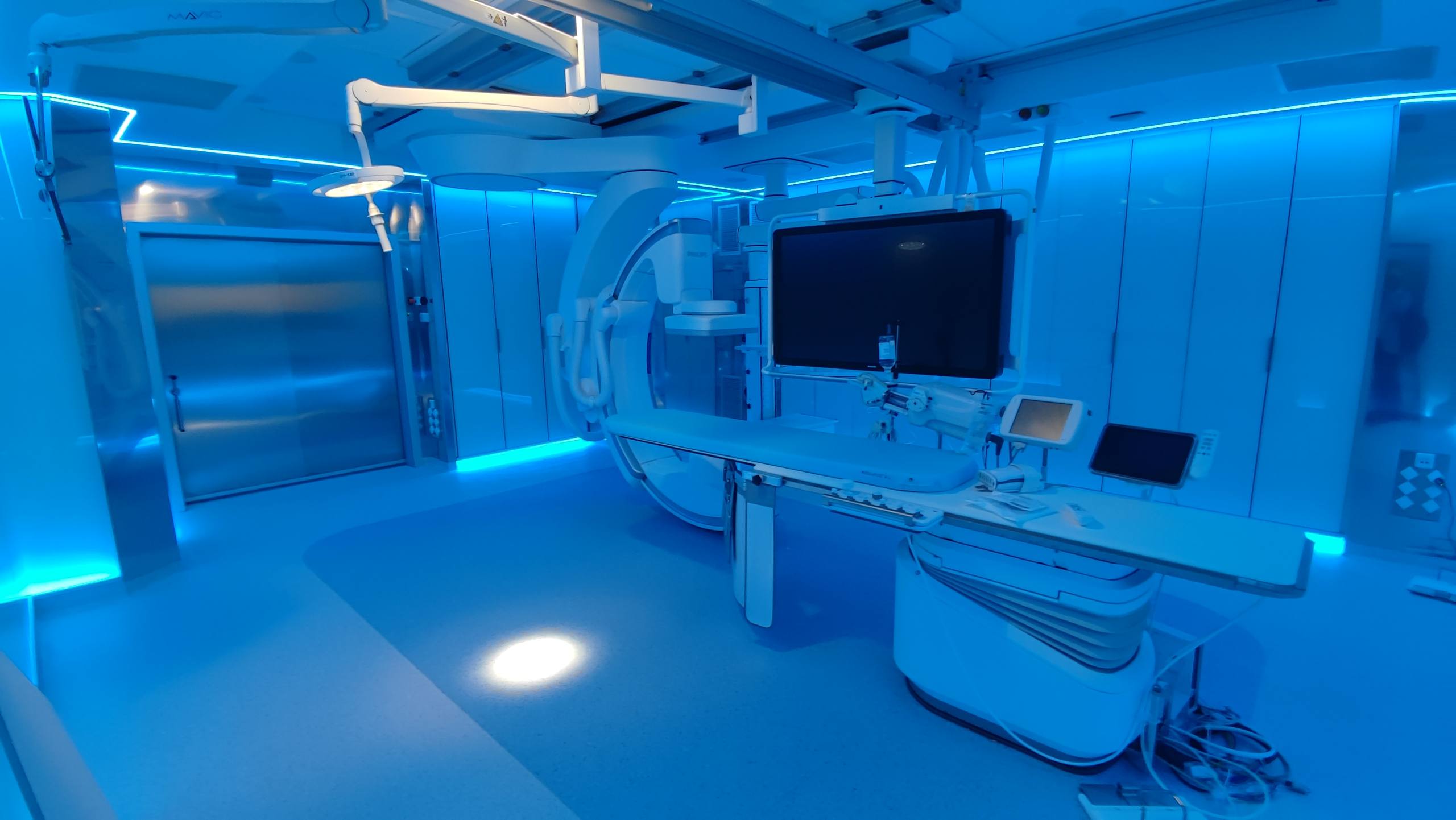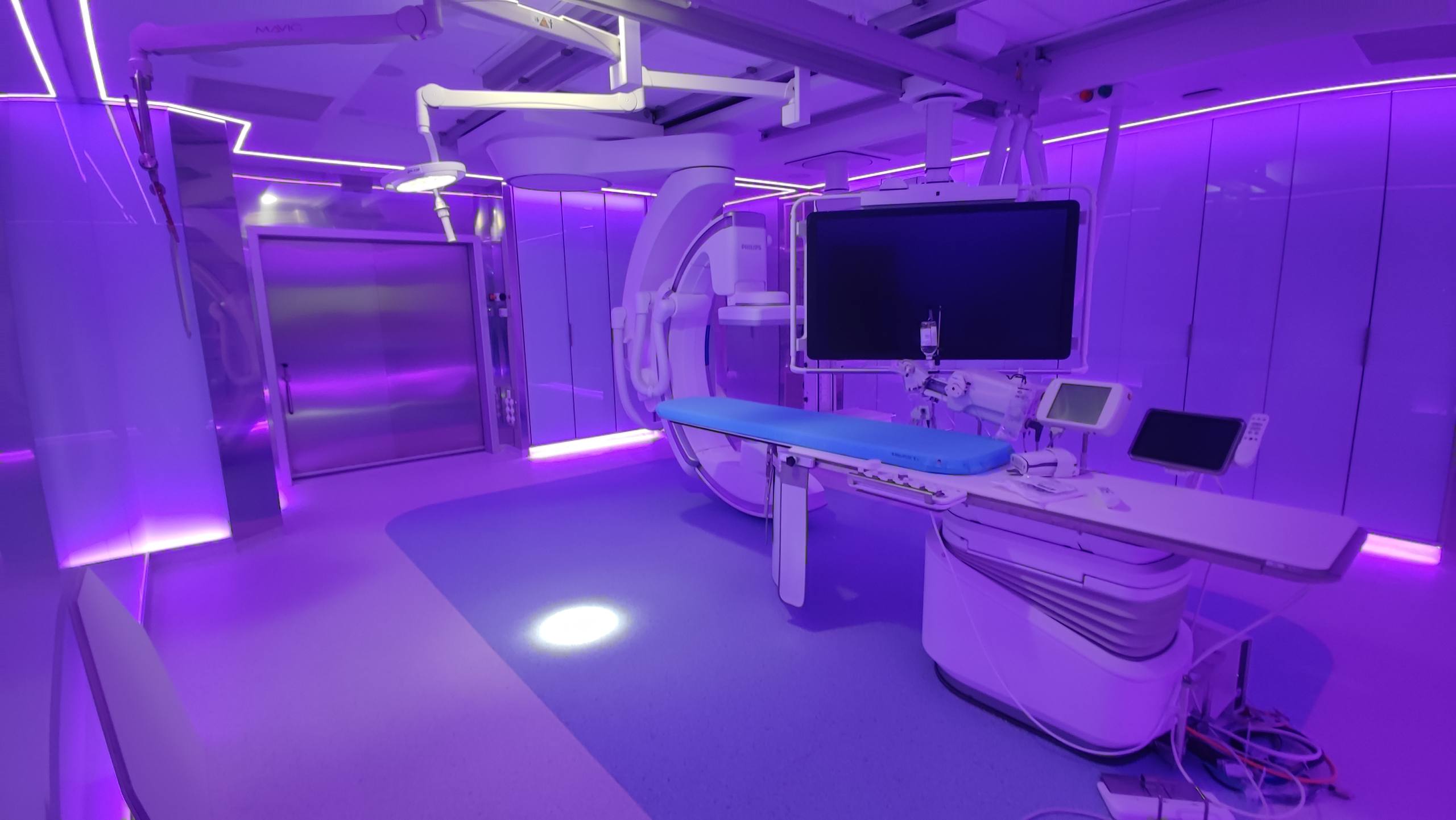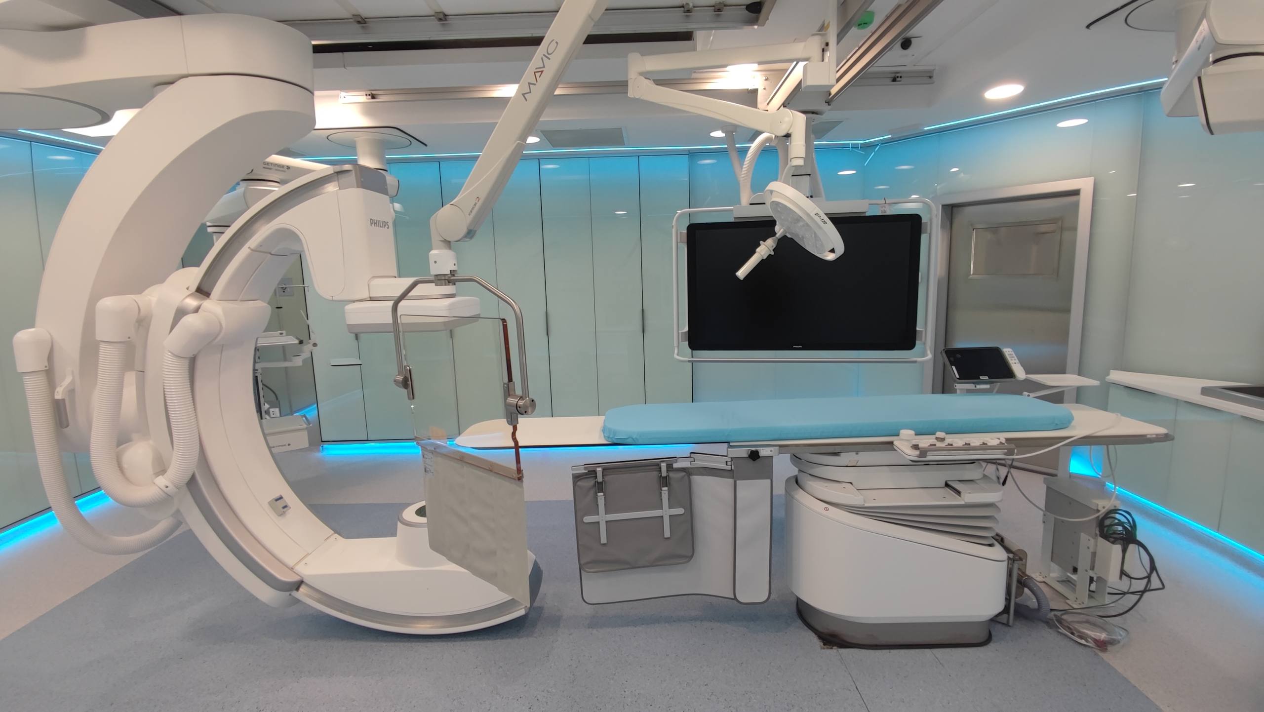 Unidad de Cardiología Intervencionista en la planta 2 del Hospital Clínico San Carlos. La intervención incluye la implantación de 4 equipos de Cardiología Intervencionista, la actuación se completa con la reforma de 2 salas más que mantienen el equipamiento y la a reorganización de todo el servicio, áreas de pacientes y personal, áreas administrativas y zonas de circulación.