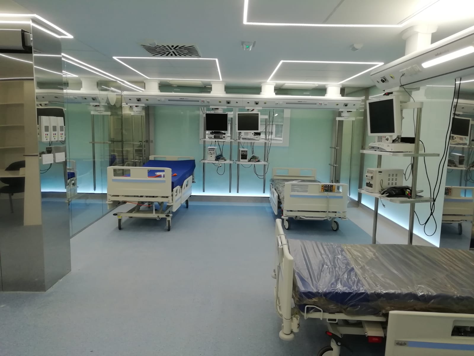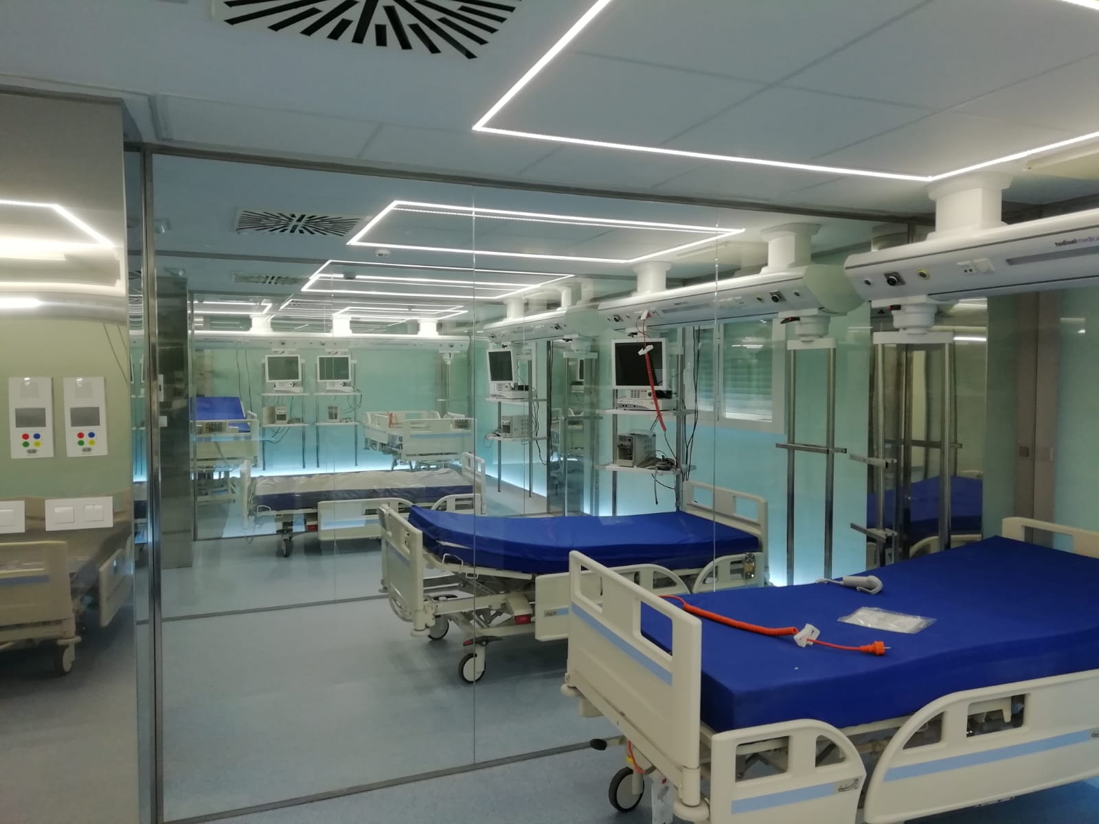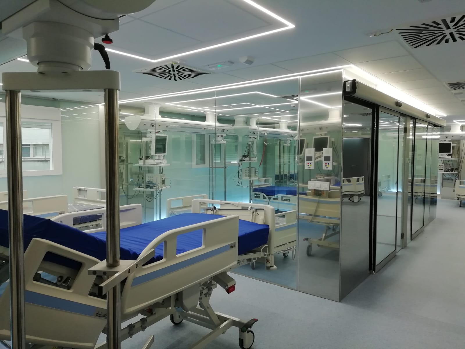 Unidad de Cuidados Intensivos Respiratorios (UCRI) en la planta baja del Hospital Universitario Virgen Macarena. Sevilla.